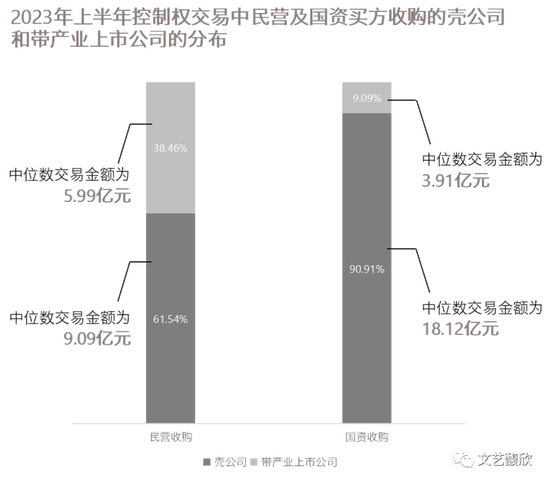 孚能科技的交易颇具代表性,即使是在上市公司控制权交易市场,带产业价值而非壳公司的上市公司是更受欢迎的标的。我们整理了2023年上半年A股市场控制权交易市场的情况,主要结论如下: