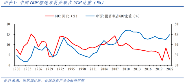 而反观我国,储蓄率、资本劳动比以及资本回报率均在大幅波动。1980年以来中国储蓄率整体呈现上升态势,IMF数据显示,1980年时中国国民储蓄率为32.63%,到2022年时已经到46.18%,上升了接近14个百分点。而美国同期从22.05%仅下降至18.72%。中国资本收入份额大幅波动,而美国资本收入份额较为平稳,基本上在45%-55%之间。中国资本回报率也在持续下滑。