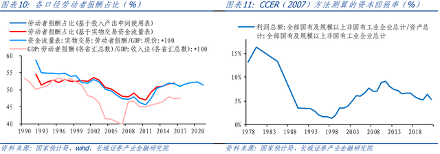 李宏瑾(2021)测算的结果显示2008年以来美德的税后资本回报率平均在5%以上,法国和日本的税后资本回报率在4%左右,其中日本甚至多次出现低于4%、接近于3%的时期,这也是其私人投资长期不增长的原因。我们测算的结果显示美国税前资本回报率在10%左右,日本在5%左右。
