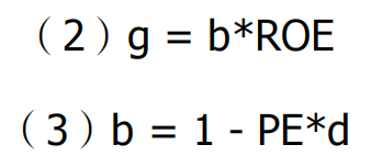g又与分红政策有关,g=留存收益比率b*留存收益的回报率,回报率一般认为也等于ROE,也即: