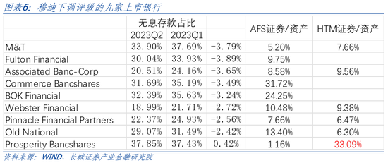 还有一家被下调评级的金融机构是Prosperity Bancshares(普罗斯佩里蒂银行),其持有HTM证券954亿美元,而总资产仅2883亿美元,HTM证券占比33.09%。在高利率环境下,如此多的HTM证券可能面临巨额亏损,类似3月份破产倒闭的硅谷银行。