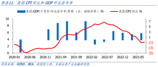 潜在经济衰退的前提是美联储继续加息并维持高利率。经济衰退也不是当前美国面临的问题,美国经济面临的依然是过热风险,而不是衰退风险。我们在年初美国经济展望中认为今年美国经济可能深度衰退,就是基于美联储持续加息来控制通胀。但也提示了紧缩不足会造成需求反弹、二次通胀的可能。3月份美国银行业危机就显露出衰退的迹象,但美联储放水救市,进而美国经济走上了紧缩不足的路径。现在美国韧性较强,通胀可能再度拐头向上,美联储可能会继续加息。
