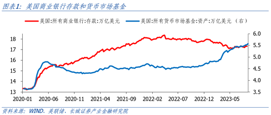穆迪下调美国银行业评级的理由是存款风险、潜在的经济衰退和商业地产贷款陷入困境。3月份硅谷银行事件发生就已经体现出存款风险。但由于美联储及时放水救市,危机得以控制。目前,美国商业银行的存款已经逐渐企稳回升。在高利率的影响下,美国银行存款转移至收益更高的货币市场共同基金,这一趋势一直持续。穆迪担忧这一趋势突然放大,成为风险源。而这就需要利率的大幅提升才可能出现。所以穆迪实际上担忧的是货币政策进一步的收紧。