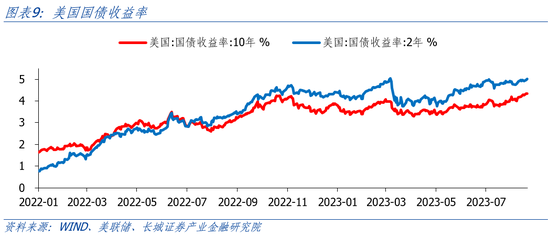8月1日,惠誉下调美国主权信用评级,10年期美债利率向上突破4%。8月22日,十年期美债收益率达到4.34%,创2007年11月以来新高。这发生在8月25日杰克逊霍尔全球央行年会召开之前。市场可能预期美联储主席鲍威尔讲话可能偏鹰,美联储可能需要进一步收紧货币政策。而穆迪、标普、惠誉这些评级机构正是基于这样的预期,担忧高利率环境下美国银行业的稳定,因而下调了评级。这些信息反应出的预期就是美联储或将持续紧缩,高利率可能延续。