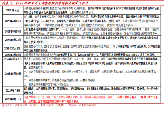 2、实际动作:根据兴业银行、浙商银行8月31日官网披露,与新闻中下调存款种类及其幅度一致,预计后续其他银行将跟进。1年期利率下调10个基点至1.75%,2年期利率下调20个基点降至2%,3年期、5年期利率均下调25个基点,分别降至2.25%、2.3%。最新存款参考利率自2023年9月1日起执行。