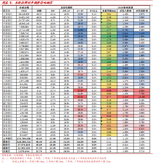 3、 存贷综合影响:存款利率下调可有效缓释房贷利率下调影响,净息差影响小于2.4bp