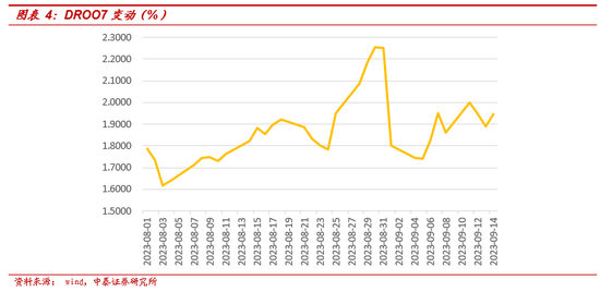 一是保持流动性合理充裕,缓解市场对于资金面的担忧。月初以来DROO7波动上升,截至9月14日,DROO7加权均价较前日上涨5.8个BP至1.95%,市场对于资金面存在担忧。