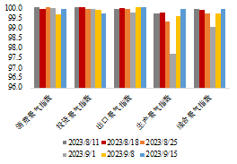 ICHI指数显示中国经济加速回暖。基于高频合成指标构建法,我们分别构建了周度频率的消费高频景气指数、投资高频景气指数、出口高频景气指数、生产高频景气指数这四个子指标,每个指标的构成均全面衡量了高频数据的趋势项和波动项变化,从而更精确地评估整体经济健康状况。我们对这四个子指数与相关月度经济数据之间的关联进行了详尽的检验。这项分析涵盖了社零销售数据,固定资产投资数据,出口数量以及工业增加值核心经济指标。结果表明,这些子指数与这些经济数据之间存在着较为显著的正向关联性,反映了四个景气指数可以较好的勾勒出核心经济指标的动态走向,且具有一定的前瞻性。进一步,为了综合反映整体经济的健康状况,我们结合四大景气指数构建了全面衡量中国经济活动高频变化的综合高频景气指数。基于四个高频景气指标对GDP增速的拟合结果,我们赋予生产侧指标30%的权重、需求侧指标70%的权重。其中,需求侧内关于消费、投资、出口的具体权重基于它们对GDP同比增长的贡献率进行分配。通过与综合PMI进行对比,可以发现综合高频景气指标具有一定的先行性。近期高频景气指数显示中国经济活动表现回暖,经济内生支持性正在增强(图2)。2023年9月以来,前两周的高频景气指数显示,相比于8月,中国综合高频景气指数持续走强,表明中国经济内生动力不断增强,考虑到消费反弹具有趋势复苏迹象,中国经济整体有望四季度加速回暖。具体来看,消费和出口方面9月中旬显著改善,反映内外部需求边际恢复加速。尽管外需的不确定性仍大,但内需的回升具有趋势性特征。投资方面,9月高频投资景气指数存在一些下滑,但随着地产政策进一步放松和专项债的持续支持,投资总体仍将保持稳健态势。