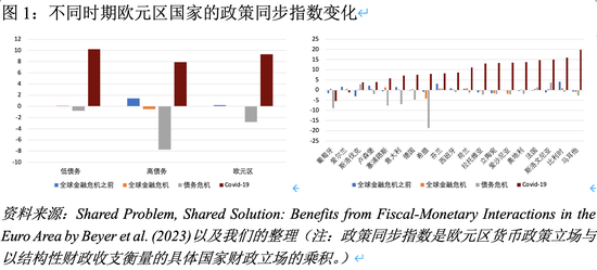 以欧洲为例,利用欧元区货币政策立场与以结构性财政收支衡量的具体国家财政立场的乘积计算政策同步指数,从统计结果来看,欧元区的财政政策和货币政策并不总是高度同步。