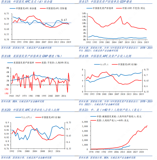 从预测结果来看,无论是采用哪种方法,未来的居民APC都有所回升并趋于稳定,在2050年达到在0.75左右,与美国领先四十年的规律保持基本一致,这种平稳的消费倾向发展得益于稳定的长期收入增长和人口结构,而并非资产的促进作用。