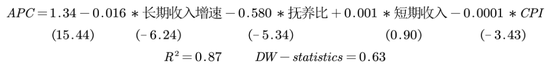 我们首先考察的是美国居民消费倾向是否也受人口结构的影响,沿用莫迪利阿尼(2004)研究中国居民消费倾向模型的方法来解释美国居民消费倾向的变化,发现美国居民APC的回归拟合优度仅0.87,短期收入与消费倾向关系并不显著。