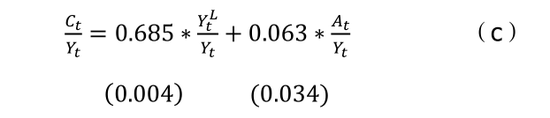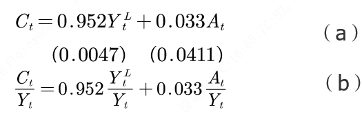 其次,莫迪利阿尼另有一篇研究美国居民消费的论文(1963),建立如下消费函数: