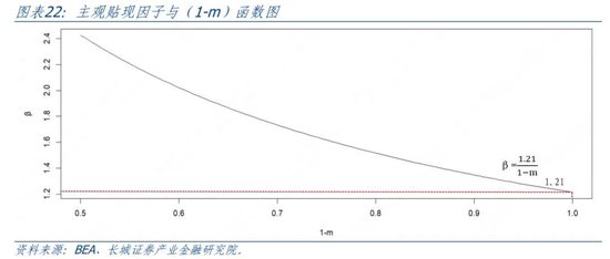 根据公式(e),我们可以发现防御性储蓄比例越高,主观贴现因子β就越高。如果m=0,β=1.21,并非符合传统学术所普遍认同的小于1,储蓄可以带来比传统理论所认为的更高的效用。并且中国居民资产回报率很低,也说明了资产只是储蓄的一种表现形式,没有对消费起到刺激作用。