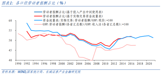 我们在2022年11月发布的《中国潜在经济增速初探》中,采用C-D生产函数模型,带入1978-2021年数据,大致测算资本的产出弹性(即资本收入份额)α为0.81,劳动的产出弹性(即劳动收入份额或劳动报酬占比)β为0.19。但我们注意到,这一结果与资金流量表和投入产出表以及各省汇总计算出的劳动/资本收入份额差距较大,也与部分研究机构测算结果不同,我们测算的资本弹性系数(即资本收入份额)明显偏高,换言之劳动弹性系数(即劳动收入份额)偏低。