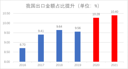 与此同时,2020年在全球疫情冲击下,中国率先复工复产,我国出口走强,出口份额上升,大幅提振了我国企业生产的乐观预期。