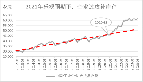 内外需持续向好改变了人们的预期,带来持续增长“幻象”: 进入2021年,在乐观预期下,我国企业对市场真实需求的感知出现偏差,制定生产计划时超额增加供给,过度补库存,工业企业库存快速累积,已经偏离了原来的增长趋势,且持续处于高位。