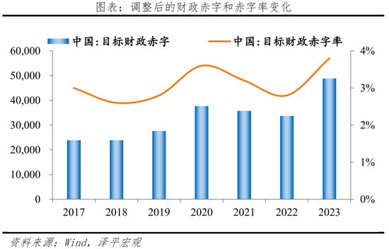 1)中央财政将在今年四季度增发2023年国债10000亿元,作为特别国债管理。全国财政赤字将由38800亿元增加到48800亿元,预计赤字率由3%提高到3.8%左右。