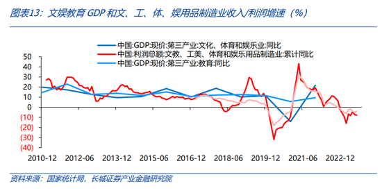 对于教育与文化体育娱乐行业,可对照文教、工美、体育和娱乐用品制造业的营业收入及利润总额增速。过往教育业以及文化体育娱乐业GDP同比与相关用品制造业营业收入、利润增速整体走势较为一致。今年前8月,文、工、体、娱用品制造业营业收入和利润总额分别累计同比下降3.8%和7.8%,增长均偏慢。从这个角度看,今年教育、文化体育娱乐行业GDP增长可能回归往年平均增速水平。