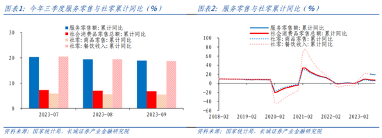 8月份,国家统计局首次向社会发布了前7个月服务零售额增速数据。截至今年10月,统计局已公布今年前7/8/9月的服务零售额累计同比,分别达到20.3%、19.4%和18.9%的高位,明显高于同期社会消费品零售总额7%左右的增速。