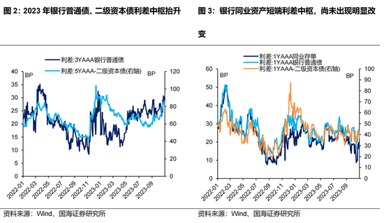 从历史行情上来看,今年中长端银行普通债、二级资本债的利差中枢已经出现抬升,或反映出商业银行对于《资本新规》落地的预期(图2)。但对于1Y以下短端而言,利差中枢尚未出现明显变化(图3)。