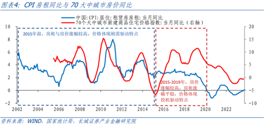 从房价房租比也可以看出,2004年前,房租与房价基本上同步上涨;但之后房价上涨速度就不断快于房租,在2015年左右房价房租比达到了183%的位置,接近于我们在《如何看待债务对经济的影响》中所提到的“阈值185%”。从CPI房租的同比走势和70大中城市房价同比也可以看出,2015年之前两者之间的同比具有一定的相关性,但之后背离逐渐扩大,处于泡沫化加速的过程。
