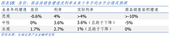 从政策引导角度看:未来随着不断降息,房价和商品房销售情况或都将得到改善。我们认为中性情况下实际利率若能下降至3.6%以下且以后稳步下降,商品房销售面积增速每年下降速度可能控制在-5%以内;如果实际利率能控制在1%以下且以后稳步下降,商品房销售面积可以维持在一定水平不变。但如果实际利率仍保持在当前较高水平不变,那么商品房销售和房价都可能经历较长调整时间。
