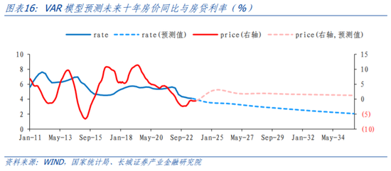 下面我们将在人口周期和货币政策双向影响之下,来预测未来房地产市场的走势。首先,在VAR模型的基础之上我们对未来十年进行预测: