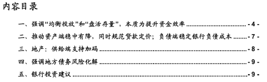 3、利率方面:继续推动资产端成本稳中有降,同时强调要规范贷款定价,继续稳定银行负债成本。