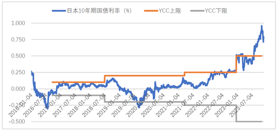 日本央行在7月28日的议息决议增加了YCC政策的灵活性:10年期日本国债的收益率波动区间依然维持在±0.5%的区间,当该收益率在0.5~1.0%范围内会机动地实施购债操作,只有收益率触及1%时,央行才会以1%的固定利率进行连续的无限量购债,这实际上就是将YCC政策的上限放宽至1%。