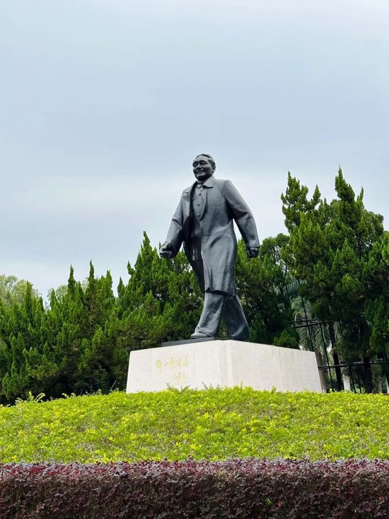 一开始,邓小平的形象是站姿。但和家人沟通时,家人说,“老爷子走路特别快,80多岁时,孩子们跟他爬黄山,还爬不过他。”联想到邓小平说过“改革开放的步子要迈大一点”,“没有一点闯的精神,没有一点‘冒’的精神,没有一股气呀、劲呀,就走不出一条好路,走不出一条新路”,最后把站姿改为走姿——不站,不停,大步迈前。