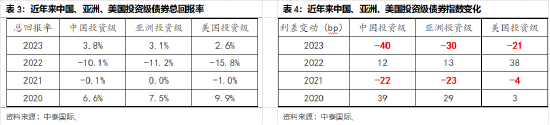 一、全球信用债:2023全球投资级债券回报高于去年,美、日、韩投资级仍具有性价比