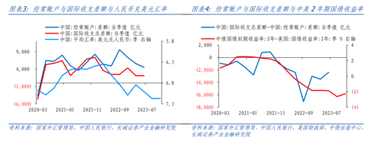 在资本仍然不能完全流动的条件下,运用蒙代尔模型建议的政策组合就是双扩张,也即货币政策和财政政策均扩张。从图2可以看出,对于经济偏弱且国际收支存在盈余的经济体来说,如果允许资本完全流动,通过降息可以加快资本的外流,汇率的贬值,贸易顺差的增加,经济状态将从A点转移到C点,财政赤字会减少,贸易顺差会增加,内外部达到平衡;如果资本仍然不能流动,要想让A点回到内部平衡线上,只能通过加大财政赤字和降息双刺激来实现,经济状态从A点转移到B点。比如2022年下半年人民币的贬值刺激了出口增加,经常账户顺差扩大,但国际收支差额并未随之扩大,因为金融项目下流出规模也跟着汇率的贬值而扩大。这是A点往C点转移中的现象之一。
