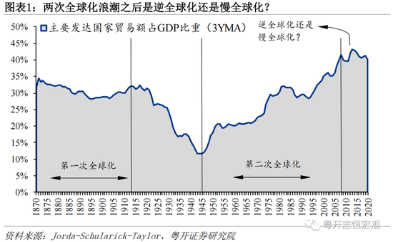 自工业革命爆发以来,现代社会经历了两次全球化浪潮。第一次浪潮始于十九世纪中叶,结束于第一次世界大战。其背景是英国在第一次工业革命之后成为“世界工厂”,通过遍布全球的殖民地发展出全球贸易网络,形成了基于贸易与投资全球化的全球商品链。第二次浪潮始于上世纪七十年代,以美国跨国公司为核心的全球价值链逐步建立,并取代全球商品链成为全球化的核心特征。2008年全球金融危机的爆发成为全球化的转折点,当前全球价值链转向区域化本土化。