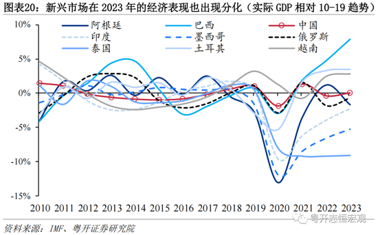 与美国经济由内需消费主导不同,欧洲经济制造业占比更高,受原材料成本和外需的影响更大。俄乌冲突后能源价格飞涨叠加亚洲市场需求不振令欧洲经济在2023年陷入低谷,依赖廉价俄气和强劲亚洲需求的传统增长模式不可持续。目前看,欧洲与俄罗斯能源的脱钩已取得一定进展,但由于欧洲能源转型较为激进,未来能源供给或持续受到地缘政治冲突的影响。同时欧洲劳动力市场较为僵化,消费需求虽不至于断崖式下滑,但修复过程会变得更加缓慢,或对经济形成持续拖累。