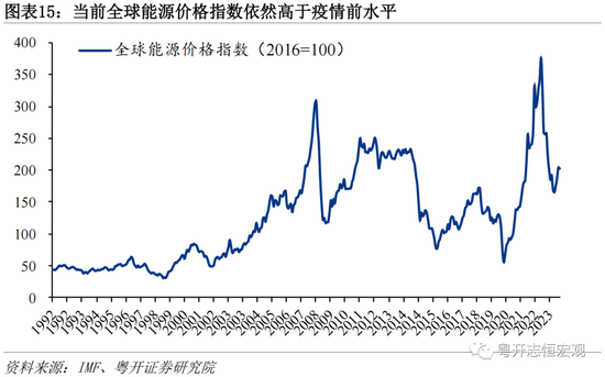 第二,全球能源转型面临“安全-清洁-廉价”的“不可能三角”。在能源低碳转型趋势不可逆转、能源安全又受到高度关注的背景之下,能源成本或将在一段时间内维持高位;地缘政治冲突引发的能源供给冲击将进一步加剧能源价格高企的状态。以欧洲为例,由于2015年巴黎协定后欧洲能源转型较为激进,欧洲对俄罗斯廉价天然气的依赖加深。但俄乌冲突的爆发迫使欧洲转向液化天然气以摆脱对俄气的依赖。这意味着欧洲制造业大国建立在廉价俄气之上的传统增长模式不可持续,欧洲主要国家在2023年普遍经历经济失速。在地缘政治冲突阴影下,欧洲或将持续受到能源“不可能三角”的约束,导致能源成本在一段时间内维持高位。