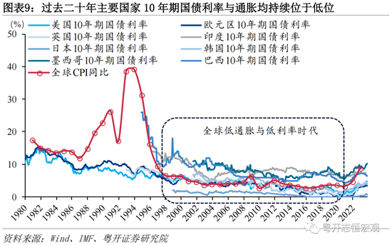 低通胀与低利率是过去二十年全球经济的主要特征之一。自上世纪末以来,全球通胀降至5%以下,主要国家实际利率纷纷创下历史最低水平。尽管锚定通胀预期的货币政策在压低通胀的过程中起到关键作用,但从长期角度看,三股结构性力量是推动全球经济进入低通胀与低利率环境的主要因素:一是全球人口抚养比下降。生命周期理论与大量实证研究都表明,儿童和老龄人口占劳动力人口比例越低,则储蓄率越高、通胀与利率越低。自七十年代以来,全球人口抚养比持续下滑,劳动力人口占比上升推动长期通胀与长期利率下行;二是全球价值链在效率模式下飞速发展,全球化达到阶段性顶峰。随着冷战的结束以及以中国为代表的发展中国家融入全球价值链,围绕效率模式构建的全球价值链逐渐成型,推动通胀和利率下行;三是以个人计算机、互联网为代表的信息技术革命推动全要素生产率加速提升。七十年代石油危机后,全球技术进步速率明显放缓。但随着八十年代个人计算机以及互联网技术的发展,位于技术前沿的主要发达国家全要素生产率再度开始提升。而新技术又随着全球化的发展扩散至发展中经济体,带动全球生产率上行,压低通胀和利率水平。