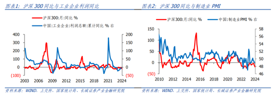 工业企业利润增速与沪深300指数增速在历史上较为相关,除了2014-2015年期间发生了较大背离,其他年份基本一致。2023年11月,工业企业利润累计增速为-4.4%,降幅正在收窄。但同月沪深300同比为-5.24%,降幅扩大,并且12月份及1月份仍在下滑。这可能说明市场预期工业企业利润增速可能会继续下降。