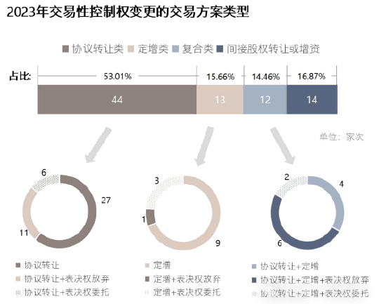 整体而言,2023年度A股上市公司交易性控制权交易市场呈现以下几大特点: