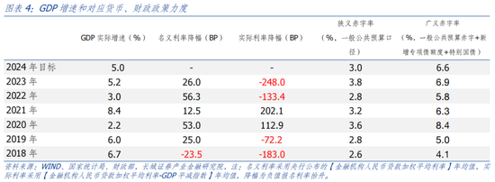 因此,为了完成2024年的经济增长目标,需要宏观政策配合协同,也即为我们第二点关注的货币、财政政策表述。今年的政府报告,对货币政策表述与前期政治局会议一脉相承,而财政政策表述中性偏积极。