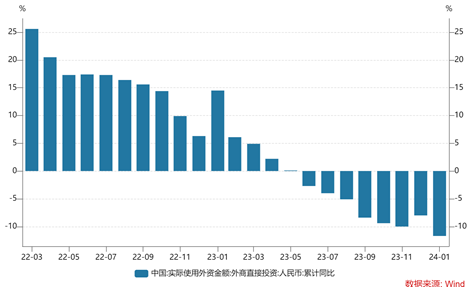 此外,除了民营企业投资意愿不足,外商直接投资也出现下滑。一直以来, FDI是中国深度嵌入全球价值链体系的重要载体。FDI的资本效应可以通过补充企业生产所需的资本推动经济增长。同时,FDI还可以通过技术溢出、竞争效应等机制对中国经济发展产生积极影响。2022年2季度以来我国外商直接投资增速呈现趋势性下降,FDI投资增速下降意味着技术进步的减缓以及国际贸易发展的受限。