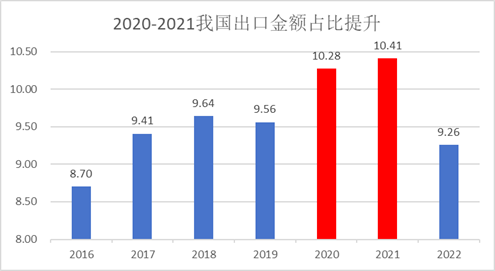 (1)盲目乐观扭曲了企业的存货投资行为。2020年,我国顶住了在疫情冲击,迅速复工复产,走出了一条探底反弹的“V型”曲线,制造业新订单指数更是连续17个月处于扩张区间,使得企业对未来充满信心。率先复工复产使得我国的出口持续走强,在世界出口中所占份额持续上升,极大的提振了我国生产企业的乐观预期。