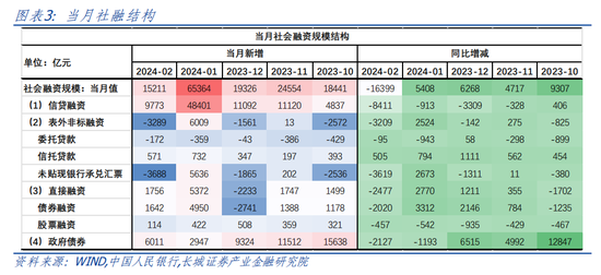2024年1-2月表外非标融资同比少增685亿元,1月、2月分别净融资6009亿元和-3289亿元。其中委托贷款自去年10至今已持续5个月净偿还,未贴现银行承兑汇票今年1-2月也同比少增。