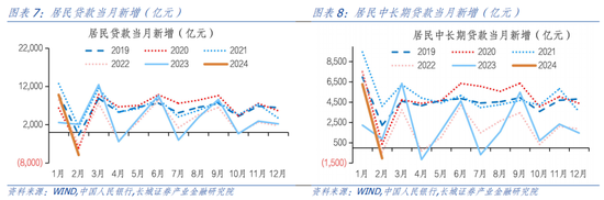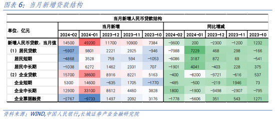 对于企业贷款,中长期贷款有韧性,而短期融资需求偏弱。1-2月企业中长期贷款新增4.6万亿元,同比仅少增100亿元,这在去年同期“开门红”的基础上并不算弱。可能依赖于金融资源向重点领域支持,央行表示2023年制造业中长期贷款余额12.2万亿元,连续3年保持30%左右的较高增速,今年将进一步鼓励在防控风险的基础上加大初创期科技型企业信用贷款投放力度。另外,也提到今年将聚焦“五篇大文章”支持重点领域和薄弱环节。1-2月企业短期贷款和票据融资新增7400亿元,同比少增8369亿元,主要是企业票据融资净偿还的影响。