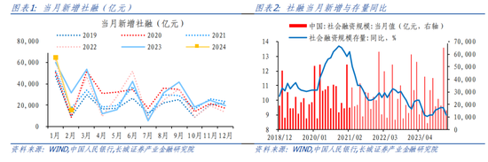 2024年2月末社会融资规模存量为385.72万亿元,同比增长9%,比1月的9.5%放缓0.5个百分点。2024开年社融增长整体放缓,我们认为主要是2023年初信贷“开门红”与政府发债超前带来的高基数影响。