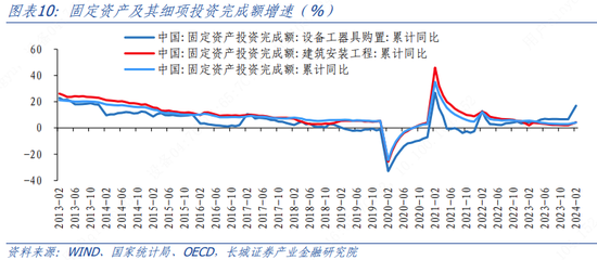 因此我们认为,今年制造业投资或有望维持相对较高水平,我们将前期预期的4.5%上调至6.5%左右,与2023年实际完成增速持平。产业金融等政策支持下,今年制造业投资或仍将对固定资产投资形成支撑。