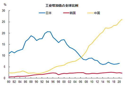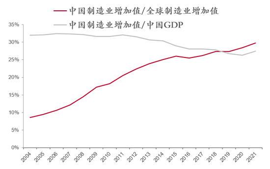 现在GDP增速慢一点,把结构性问题解决了、或缓解了,那么后面增长就会更好。按照购买力评价来计算,我们已经是全球第一了。因为中国物价低,中国劳动力成本低。比如说中国一个清洁工工作一小时,也就是40块钱人民币,美国的话大概一小时就相当于要200块钱人民币,所以算GDP肯定是美国高。如果我们能够不断提高最低工资水平,那么,用收入法计算的GDP就会显著提高,这比投资拉动的模式更能提高增长质量。因为投资拉动模式的核心是降低资金成本和人力成本,以便供给的产品能够低成本出售。但劳动力同时也是消费者,如果薪酬低,消费能力不足,则供给大于消费,就会导致产能过剩。反过来,由于劳动力成本上升,企业为了赚钱,只有生产高附加值、有独特技术优势的产品才能盈利,那么,这就迫使企业增加研发投入,提高产品质量。看看目前全球的制造业强国,哪个国家的产业工人薪酬不比我国高出几倍?不少人担心我国制造业占GDP的比重下降会影响到制造强国目标的实现,但中国制造业占全球的比重却从20年的8.6%上升到如今的30%,占比之高可谓笑傲江湖。但仍以中低端为主。不过,制造业的就业人口则不断下降,毕竟自动化程度提高了。过去是机器替代人力,现在是机器替代脑力。中国制造业占全球比重持续上升