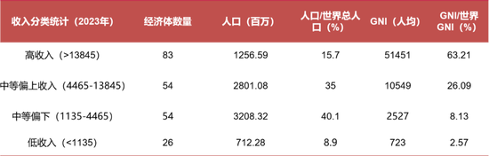 全球各大经济体收入分组概况(美元)