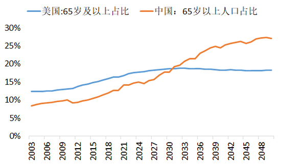 美国的老龄化率到2031年以后就走平了,不再有上升了,但中国老龄化率依然在加速,到2070年,中国的老龄化率水平将超过日本,我们比日本更老;另外,中国的预期寿命现在已经超过了美国,抚养比例上升加速,以后一个老年人居多的中国跟一个年轻人居多的美国来竞争,从这个角度来看,科技发展是关键。