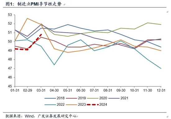 实际上出来的3月PMI为50.8,2023年12月-2024年3月分别为49.0、49.2、49.1、50.8。