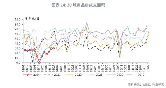 M1方面, 3月30大中城市商品房成交面积同比录得-55.6%,新房销售低位运行拖累M1。结合季节性因素,3月M1同比或小幅上行。M2方面,3月社融与信贷增速或继续放缓,结合季节性因素,2月M2同比预计较上月持平。